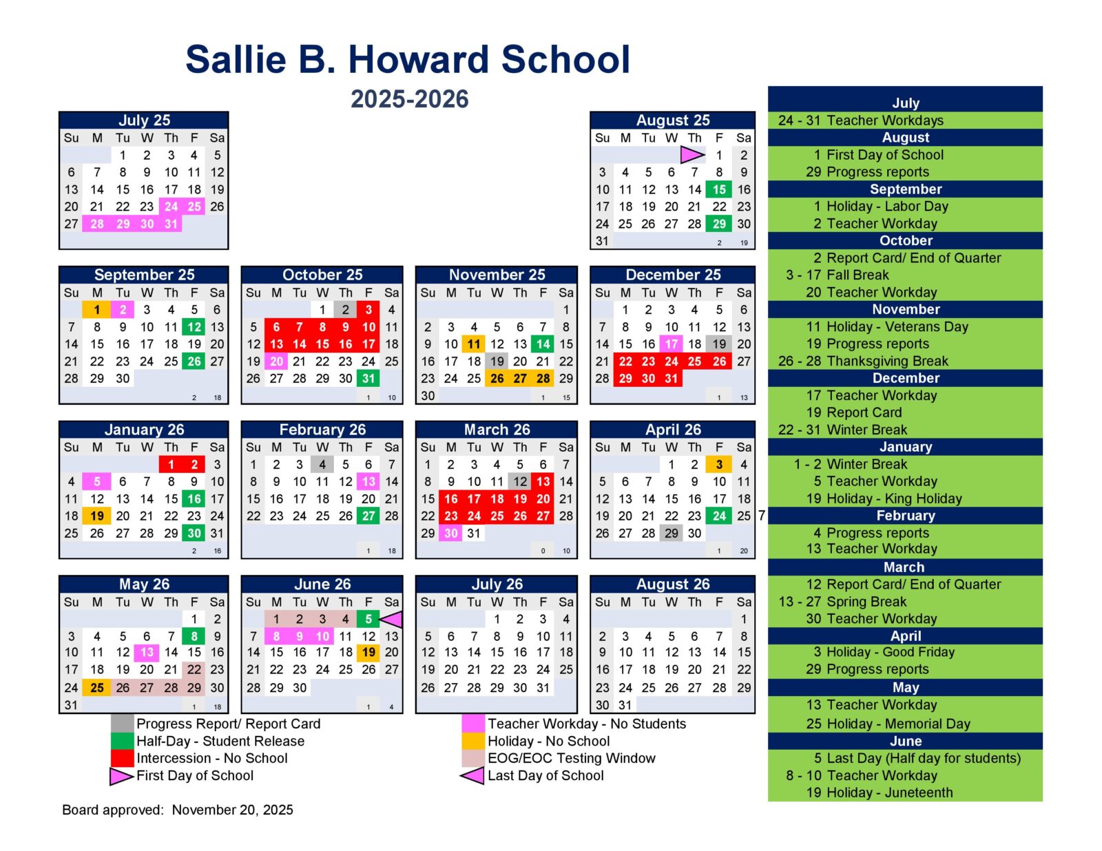 School Academic Calendar